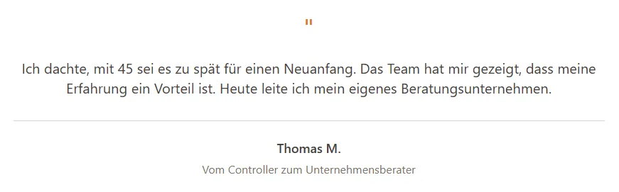 Mit klarer Struktur, erfahrenen Coaches und persönlicher Begleitung zu Deinem neuen beruflichen Glück.